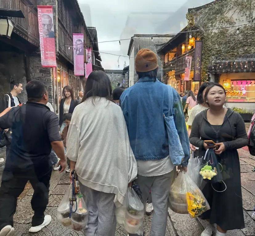 在乌镇戏剧节的人潮中,一对看似寻常的夫妻拎着满手盒饭匆匆走过——若不是那双在人群中格外醒目的挺拔身影,谁又能认出这竟是曾在综艺里掀起情感风暴的宋宁峰与张婉婷?当镜头从真人秀的聚光灯转向街头偶遇,这对夫妻正用最本真的生活状态,向世人展示着明星光环之外的烟火人生。