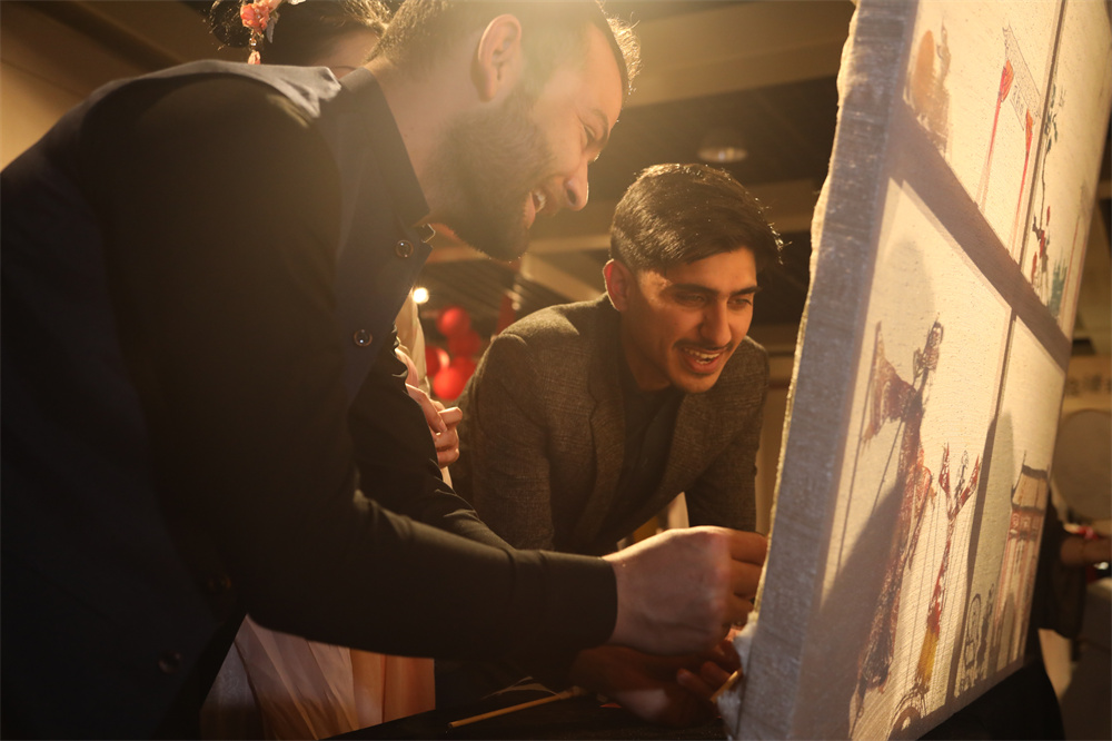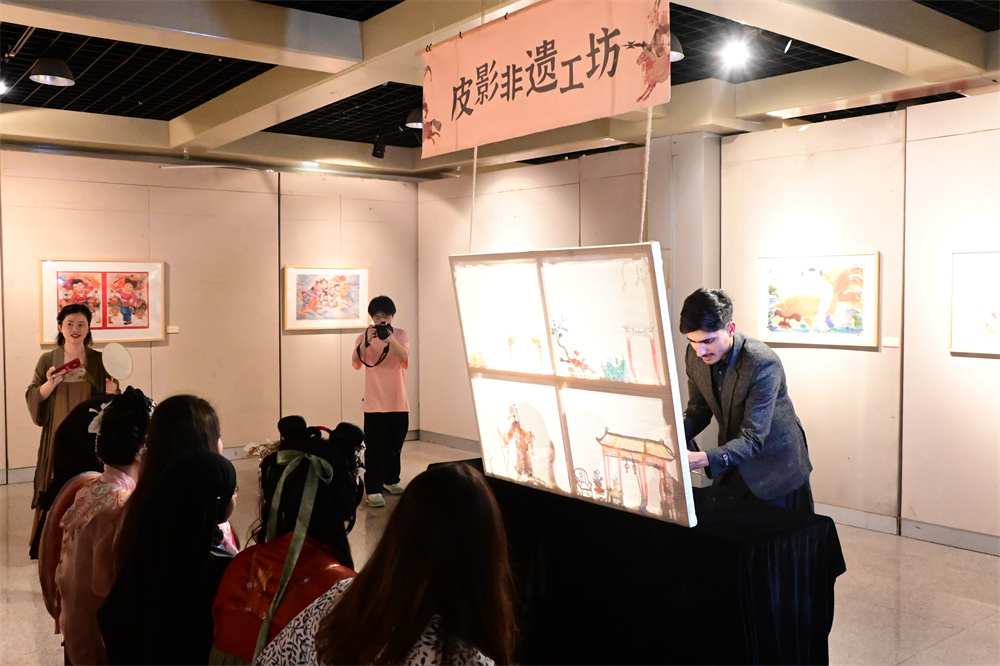 巴基斯坦留学生宜学华正举着牛皮皮影雀跃舞动,只见他手腕轻抖,哪吒的皮影便在白幕上腾跃如飞,引得现场爆发阵阵惊叹。这种跨越时空的创意碰撞,让美术与设计学院李森老师连声赞叹:孩子们让老手艺有了国际范儿!