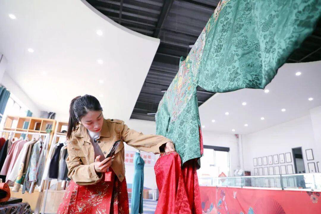 优化产业布局,形成“1+6”特色服饰产业区块,即以大集镇为核心,辐射原创汉服网销区、民族服饰区、祭祀服饰区等6个特色示范区,将汉服从设计到销售的周期缩短至7天。