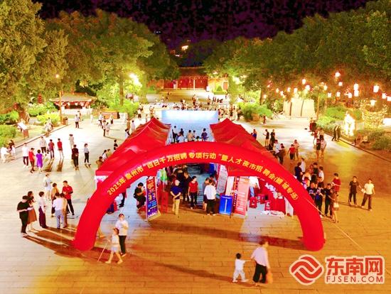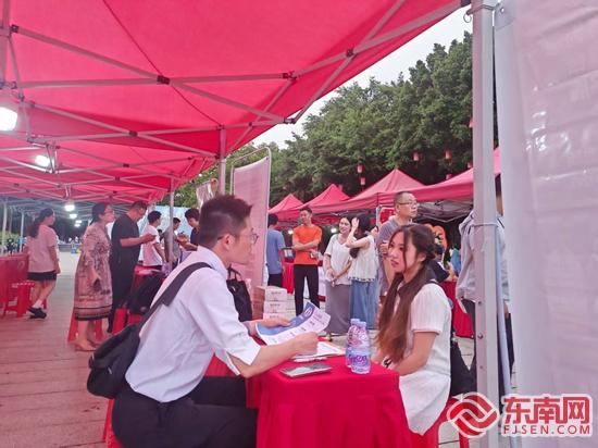 东南网8月16日讯(本网记者 施远圻)“我们公司诚聘会计、人力资源顾问”“我们公司比较年轻化,适合有创意的你加入”……15日晚上,在泉州市区府文庙广场上,50余家企业带着千余个优质岗位现场“摆摊”招才。