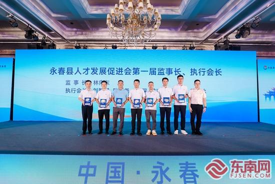 现场,与会领导嘉宾为理事会会长、顾问团、监事长、执行会长、副会长、秘书长等理(监)事会成员颁发证书,为永春县优才服务联盟会员单位、热心助才单位授牌;并举行县(市、区)人才协会友好共建签约、“桃溪英才·携手前行”新老人才结对行动、产才融合项目签约等仪式,发布永春人才IP形象。